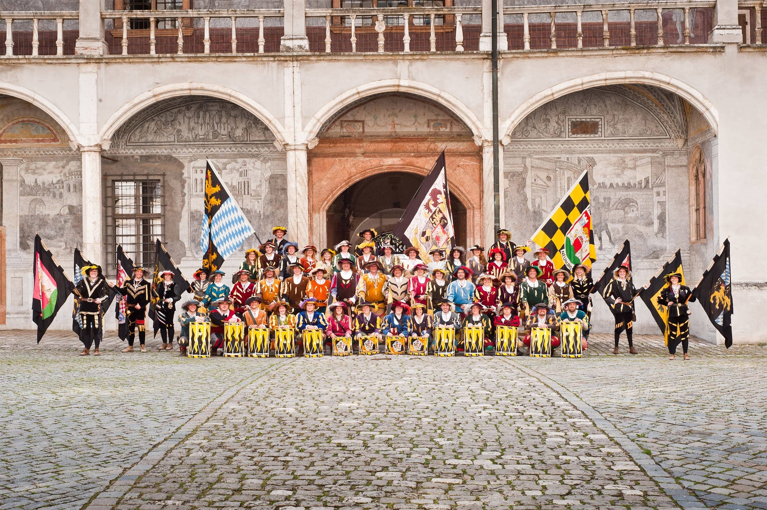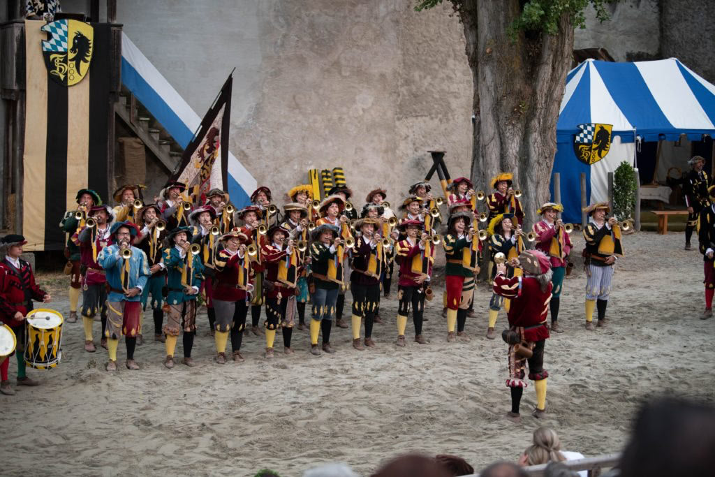 Unsere Kostüme sind Landsknechtstrachten, die nach Originalschnitten aus der Zeit des Pfalzgrafen Ottheinrich um 1504 angefertigt wurden. Wir dürfen mit Stolz von uns behaupten, dass wir im Erscheinungsbild einzigartig in der Landschaft der Fanfarenzüge sind. Wir sind nicht einfarbig, sondern bunt und werden damit dem Bild eines Landsknechtshaufen gerecht. Unsere Instrumente sind Naturtoninstrumente ohne Ventile und Resonanzen. Wir spielen ausschließlich Fanfarenstücke, Melodien aus der vergangenen und gegenwärtigen Pop- und Rockgeschichte sind uns fremd.