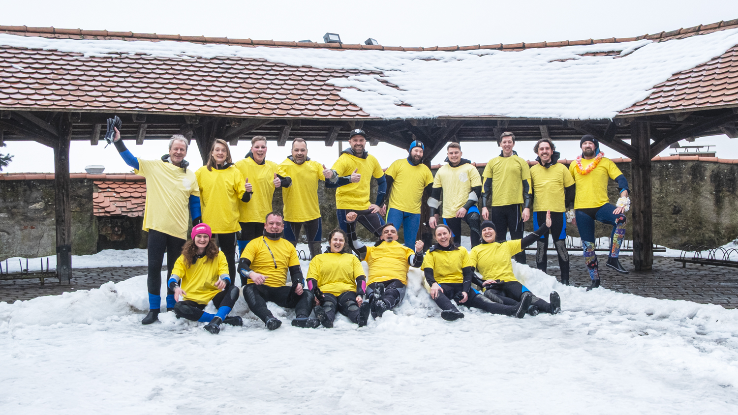 same procedure as every year – Das letzte Januar Wochenende ist fest für das Donauschwimmen reserviert und so stiegen am Sa 31.012026 16 Unverfrorene wieder ins kalte Nass.